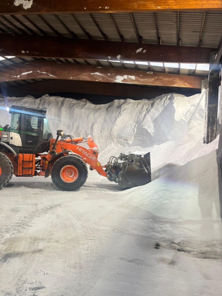 In unserem hauseigenen Streusalzlager halten wir für den Straßendienst bis zu 60.000 to vor, die wir bei Bedarf kurzfristig an die vom Auftraggeber gewünschten Stellen liefern.